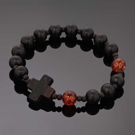 8mm korale bransoletka różaniec heban bursztyn koniak