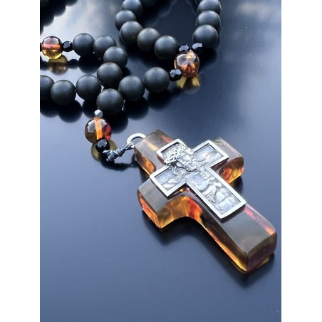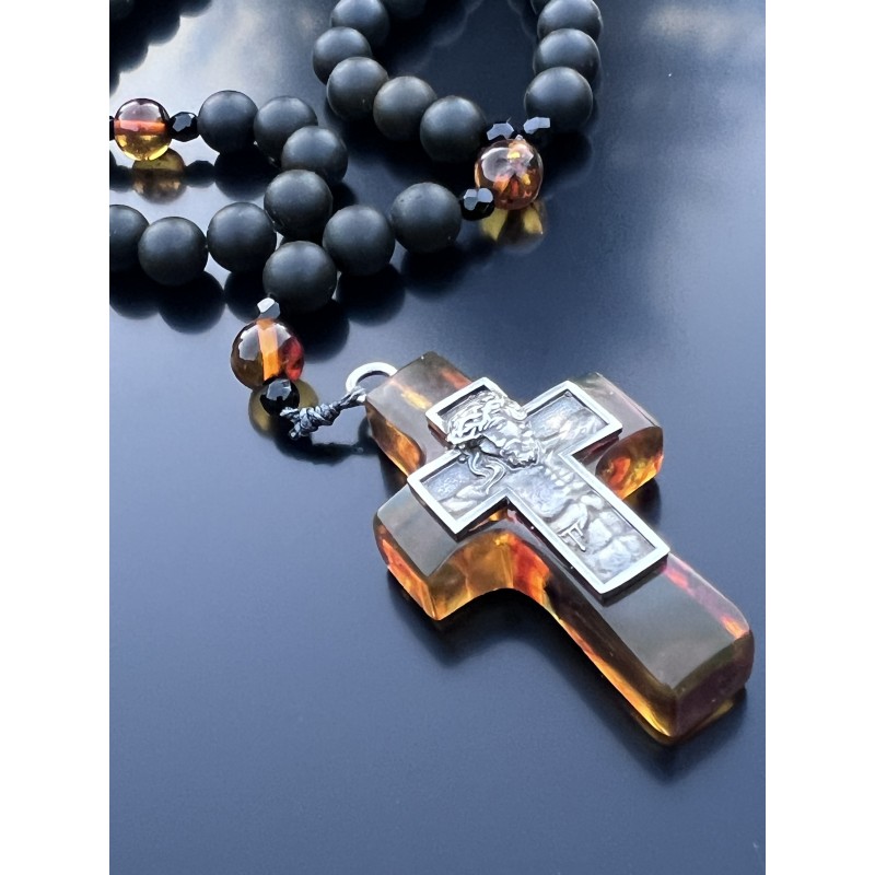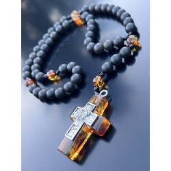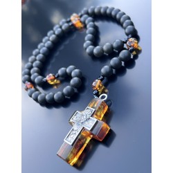 Rosarium „Lux in Tenebris” – Czarny Bursztyn Bałtycki, Koniakowy Bursztyn, Srebro