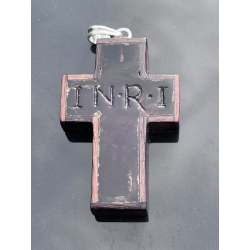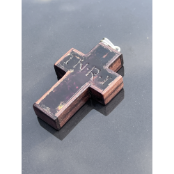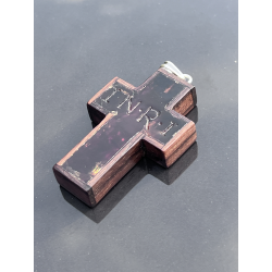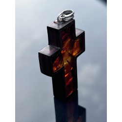 Krzyżyk wisior z naturalnego bursztynu i hebanu tygrysiego