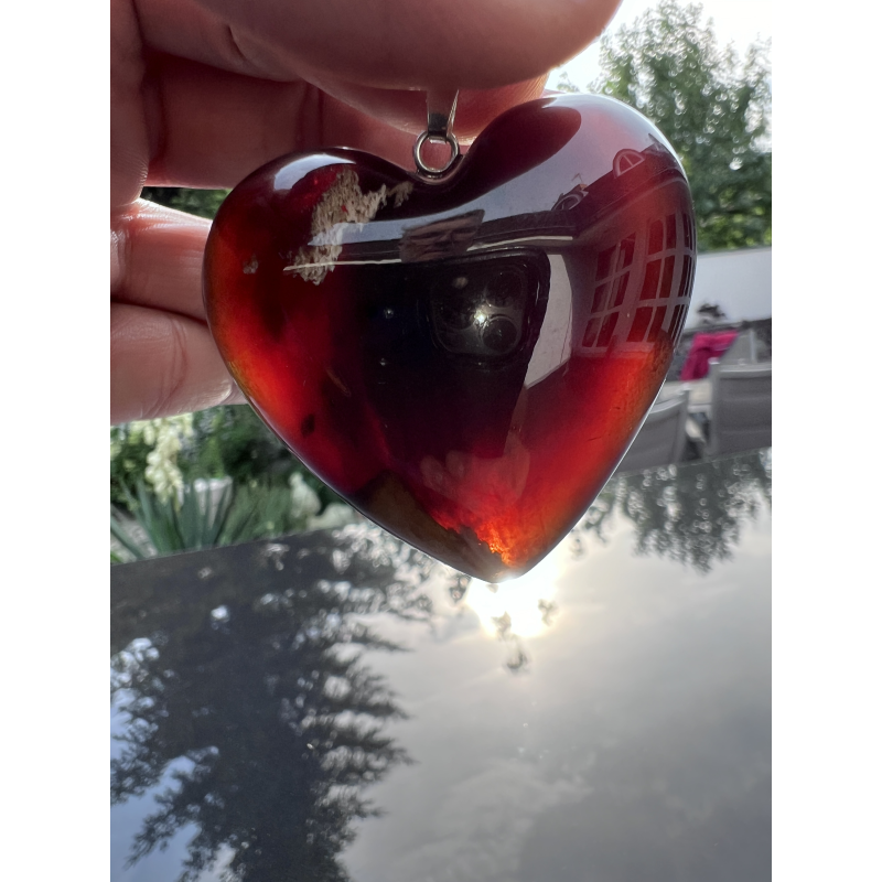 Serce z bursztynu sumatrzańskiego, srebro 925