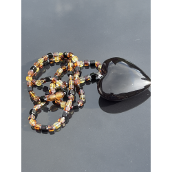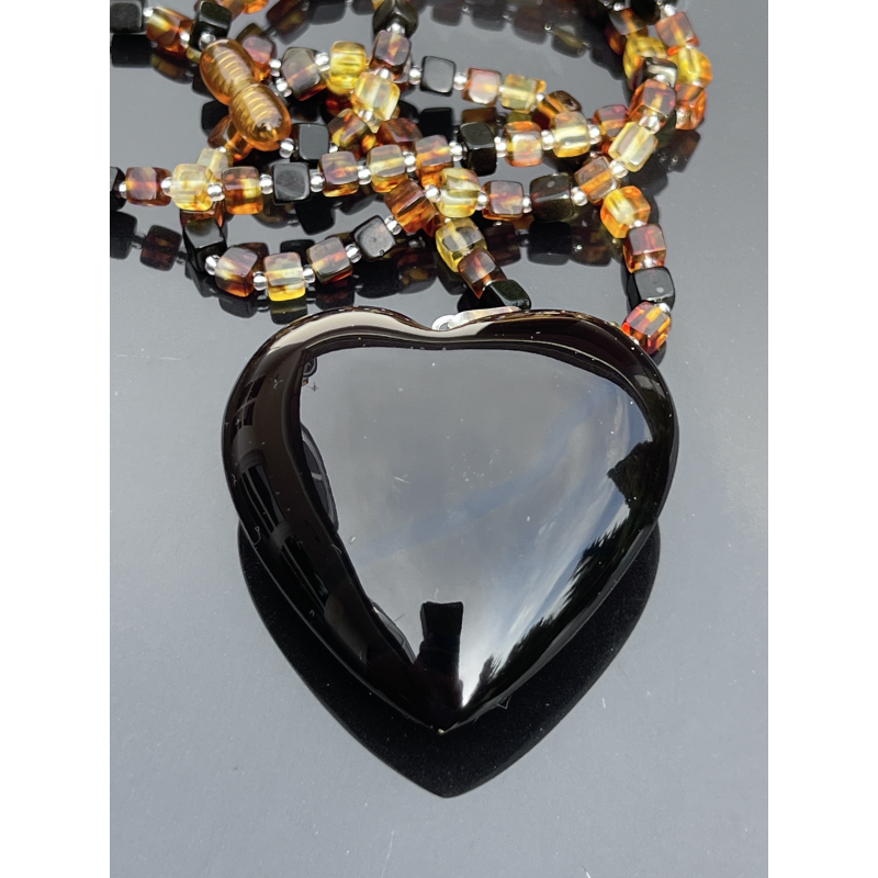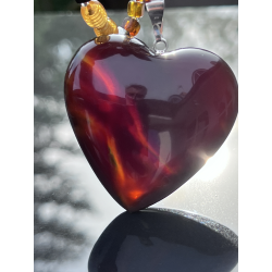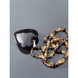 Naszyjnik z bursztynu bałtyckiego z zawieszką w kształcie serca z bursztynu sumatrzańskiego, srebro 925