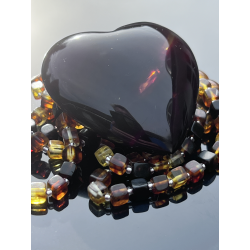 Ten wyjątkowy naszyjnik wykonany jest z naturalnego, prasowanego bursztynu bałtyckiego w formie kostek o wymiarach około 4 mm x 4 mm. Jego obwód wynosi około 60 cm, a całość zakończona jest wygodnym i solidnym zapięciem skręcanym. Naszyjnik łączy w sobie klasyczną elegancję bałtyckiego bursztynu z egzotyką bursztynu sumatrzańskiego, tworząc harmonijną i stylową całość.