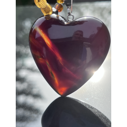 Centralnym punktem tego naszyjnika jest zawieszka w kształcie serca, wykonana z jednego kawałka naturalnego bursztynu z Sumatry. Serce ma wymiary około 5 cm x 4,5 cm (ok. 2 x 1,8 cala) i waży 15-20 gramów. Uszko zawieszki wykonane jest z wysokiej jakości srebra próby 925, co podkreśla elegancję i trwałość całej kompozycji.