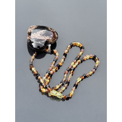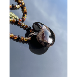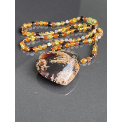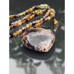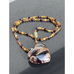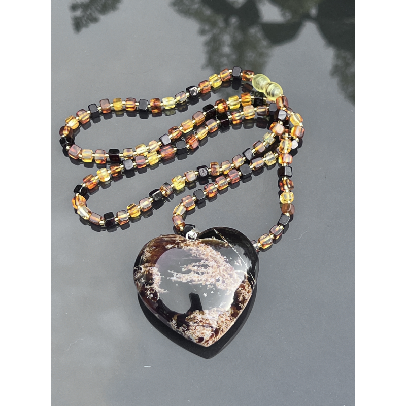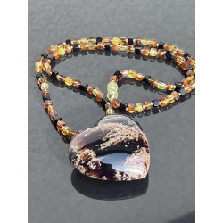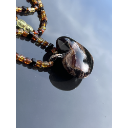 Naszyjnik z bursztynu bałtyckiego z zawieszką w kształcie serca z bursztynu sumatrzańskiego, srebro 925