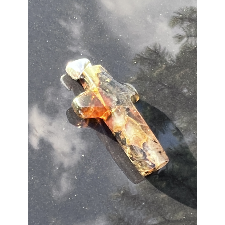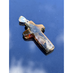 Ten wyjątkowy krzyżyk został wykonany z naturalnego bursztynu bałtyckiego – kamienia, który od wieków symbolizuje światło, oczyszczenie i Bożą obecność. Delikatny, a jednocześnie głęboko symboliczny – jego niewielki rozmiar (ok. 3 cm x 1,8 cm) czyni go dyskretnym, ale pełnym duchowej siły znakiem wiary. Srebrna krawatka dodaje elegancji i trwałości.