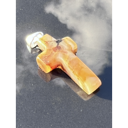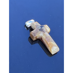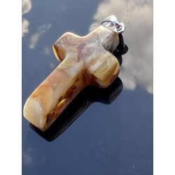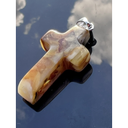 Ten wyjątkowy krzyżyk został wykonany z naturalnego bursztynu bałtyckiego – kamienia, który od wieków symbolizuje światło, oczyszczenie i Bożą obecność. Delikatny, a jednocześnie głęboko symboliczny – jego niewielki rozmiar (ok. 3 cm x 1,8 cm) czyni go dyskretnym, ale pełnym duchowej siły znakiem wiary. Srebrna krawatka dodaje elegancji i trwałości.