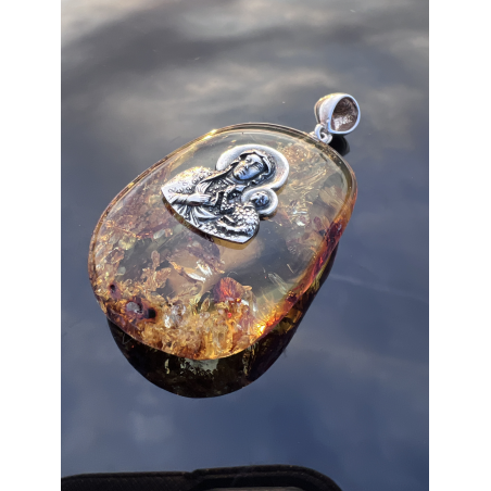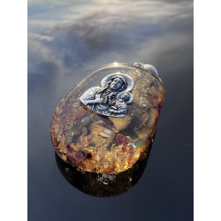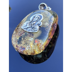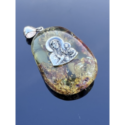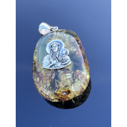 Duży medalion Matki Boskiej Częstochowskiej – bursztyn i srebro AG925