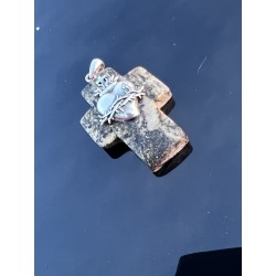 Krzyżyk „Cor Iesu” – Matowy Bursztyn Bałtycki (4 × 3 cm) | Srebro