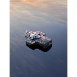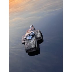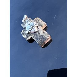 Matowa powierzchnia krzyża subtelnie rozprasza światło, podkreślając jego naturalne pochodzenie i skupiony charakter. Każdy egzemplarz posiada unikalną strukturę — od delikatnych przetarć po głębsze, organiczne wzory.