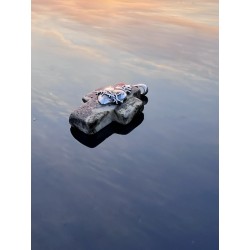 Matowy bursztyn z czasem — pod wpływem dotyku — może delikatnie się polerować, nabierając subtelnego połysku i głębi koloru.