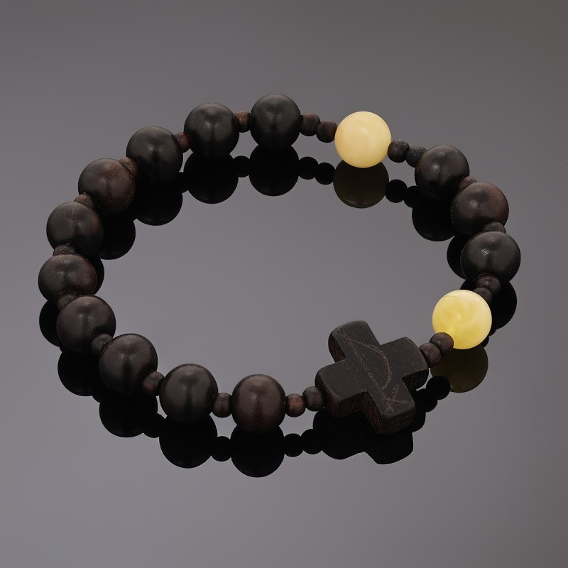 Bransoletka różaniec na rękę z hebanu i bursztynu OraRosarium