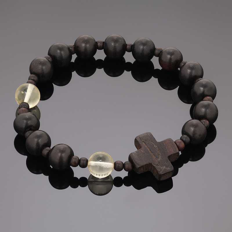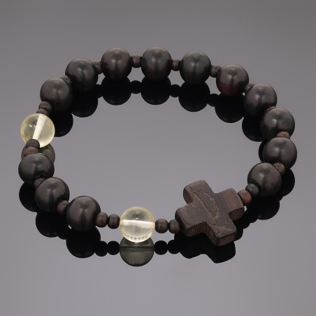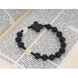 OraRosarium Bransoletka różaniec na rękę z hebanu i bursztynu