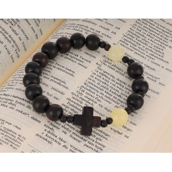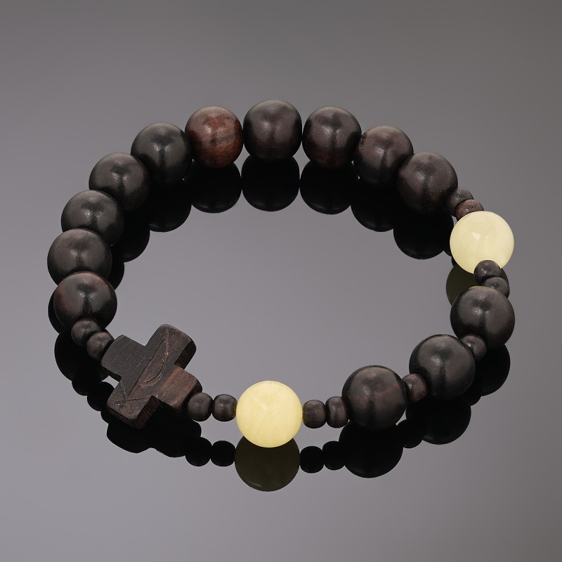 OraRosarium Bransoletka różaniec na rękę z hebanu i bursztynu rozmiar męski