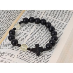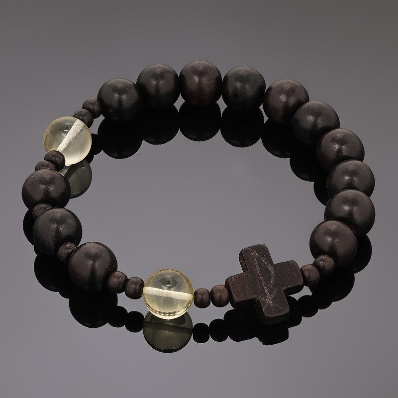 OraRosarium Bransoletka różaniec na rękę z hebanu bursztynu cytrynowego rozmiar męski