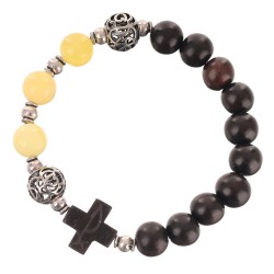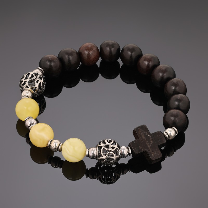 OraRosarium Bransoletka różaniec na rękę z hebanu i bursztynu żółty mleczny antyczne srebro
