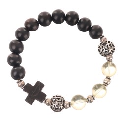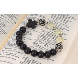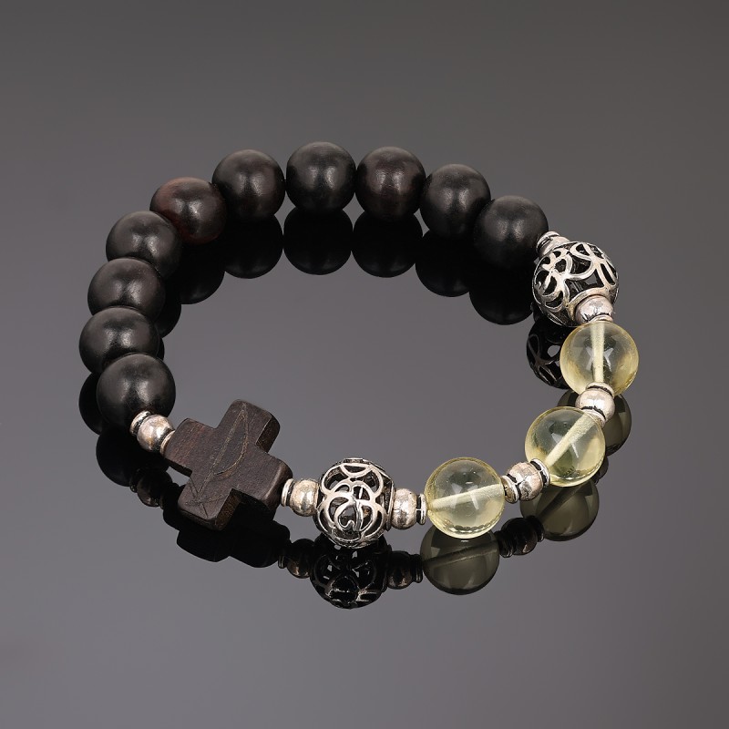 OraRosarium Bransoletka różaniec na rękę z hebanu i bursztynu żółty mleczny antyczne srebro