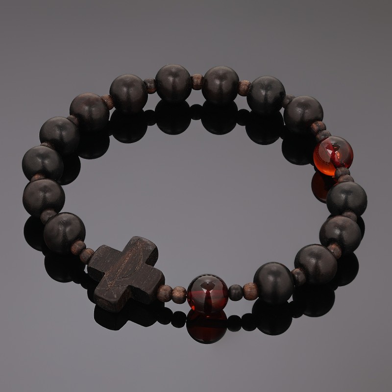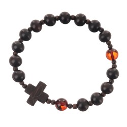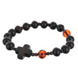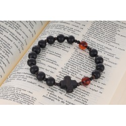 Bransoletka różaniec na rękę z hebanu i bursztynu wiśniowego rozmiar damski