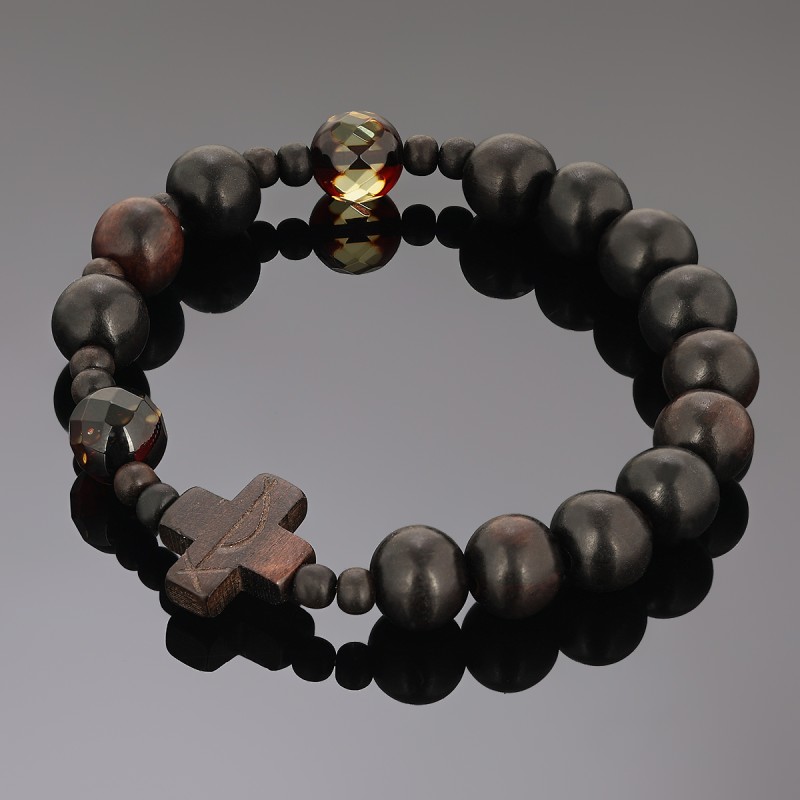 OraRosarium Bransoletka różaniec na rękę z hebanu i bursztynu fasetowanego