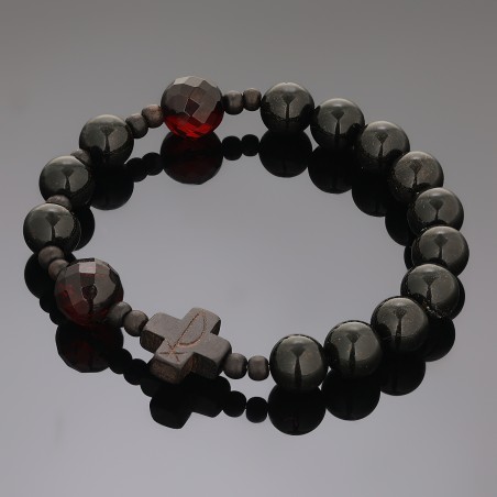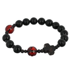 OraRosarium Bransoletka różaniec na rękę z bursztynu czarnego polerowanego i wiśniowy fasetowany