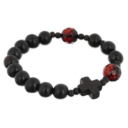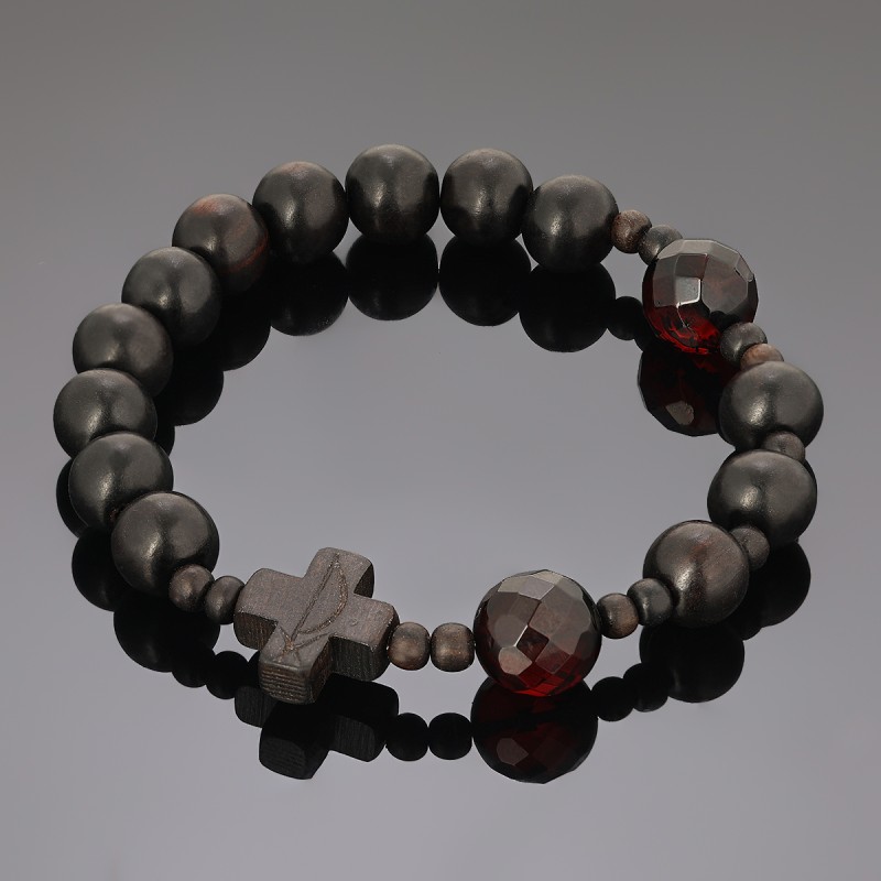 OraRosarium Bransoletka różaniec z hebanu i bursztynuwiśniowy fasetowany