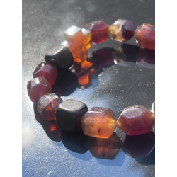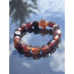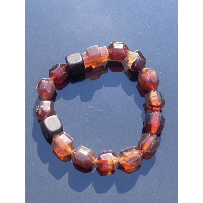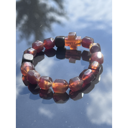 Wyjątkowy różaniec katolicki w formie bransoletki, wykonany z naturalnego bursztynu pochodzącego z Sumatry. Koraliki o średnicy ok. 10 mm w połączeniu z "dziesiątkami" z hebanu tygrysiego (8 mm x 8 mm) tworzą harmonijną całość, idealną do modlitwy i codziennego noszenia. Krzyżyk o wymiarach ok. 16 mm x 16 mm podkreśla duchowy charakter bransoletki, będącej symbolem wiary i modlitwy.