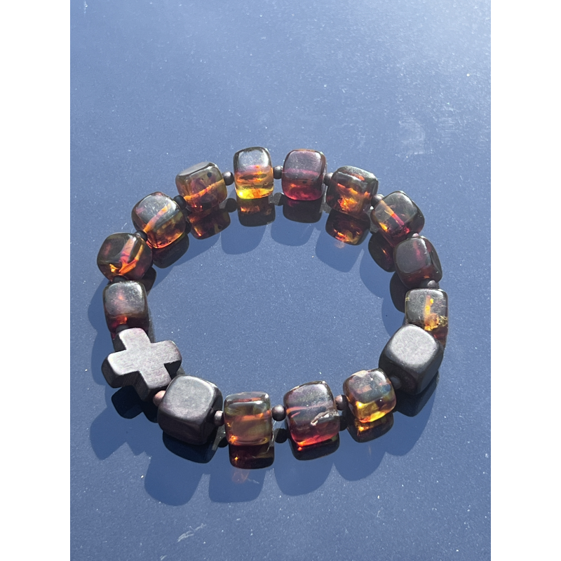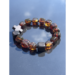 Bransoletka różaniec wykonana z prasowanego bursztynu bałtyckiego to wyjątkowy duchowy przewodnik, który nie tylko zdobi, ale przede wszystkim wspiera modlitwę. Koraliki o średnicy ok. 8-10mm, połączone z krzyżykiem i małymi koralikami dystansowymi, stworzą harmonijną całość, która pomaga w medytacji i refleksji.