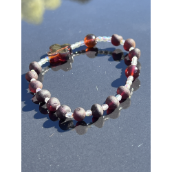 Oferujemy subtelny i elegancki różaniec katolicki w formie bransoletki, wykonany z naturalnego bursztynu bałtyckiego. Koraliki o rozmiarze ok. 7-8 mm idealnie komponują się z dziesiątkami wykonanymi z kalibrowanego bursztynu bałtyckiego o średnicy ok. 8-9 mm. Całość tworzy duchową i estetyczną ozdobę, idealną do codziennego noszenia i modlitwy. Bransoletka o długości ok. 17-18 cm jest wygodna i delikatna na nadgarstku.