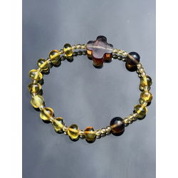 Oferujemy subtelny i elegancki różaniec katolicki w formie bransoletki, wykonany z naturalnego bursztynu bałtyckiego. Koraliki o rozmiarze ok. 7-8 mm idealnie komponują się z dziesiątkami wykonanymi z kalibrowanego bursztynu bałtyckiego o średnicy ok. 8-9 mm. Całość tworzy duchową i estetyczną ozdobę, idealną do codziennego noszenia i modlitwy. Bransoletka o długości ok. 17-18 cm jest wygodna i delikatna na nadgarstku.