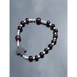Oferujemy subtelny i elegancki różaniec katolicki w formie bransoletki, wykonany z naturalnego bursztynu bałtyckiego. Koraliki o rozmiarze ok. 7-8 mm idealnie komponują się z dziesiątkami wykonanymi z kalibrowanego bursztynu bałtyckiego o średnicy ok. 8-9 mm. Całość tworzy duchową i estetyczną ozdobę, idealną do codziennego noszenia i modlitwy. Bransoletka o długości ok. 17-18 cm jest wygodna i delikatna na nadgarstku.