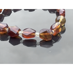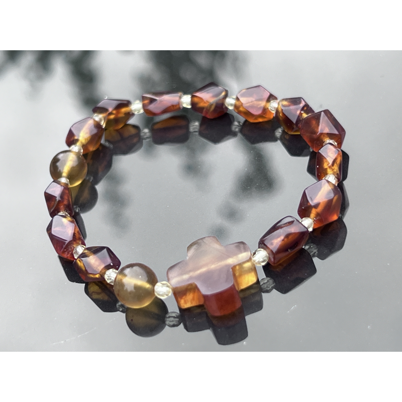 Ta wyjątkowa bransoletka różaniec wykonana jest z ręcznie ciętego fasetowanego bursztynu pochodzącego z Birmy. Koraliki o wielkości około 8-10 mm (0,31-0,39 cala) dodają jej niepowtarzalnego blasku i elegancji. Krzyżyk, który ją wieńczy, został starannie wyrzeźbiony z naturalnego bursztynu ze Sumatry i ma wymiary 16 x 16 mm (0,63 x 0,63 cala). Bransoletka ma długość około 17-18 cm (6,69-7,09 cala) i jest zamontowana na elastycznej, silikonowej gumce jubilerskiej, co sprawia, że pasuje na większość nadgarstków.