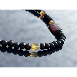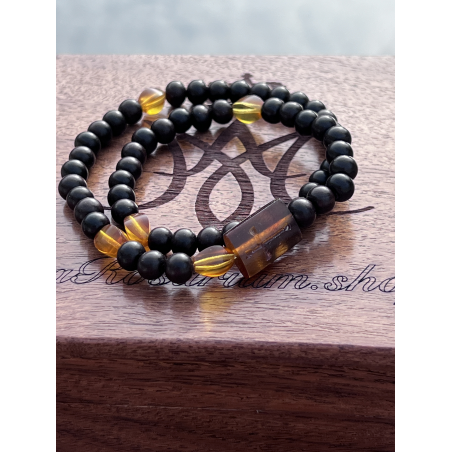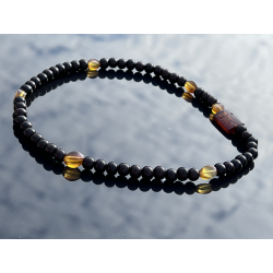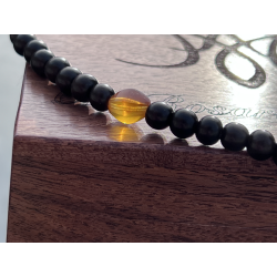 Damski różaniec na rękę z hebanu i bursztynu - OraRosarium