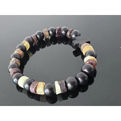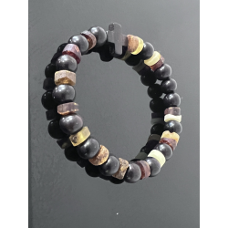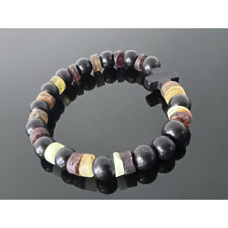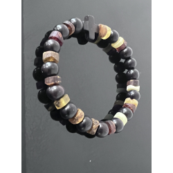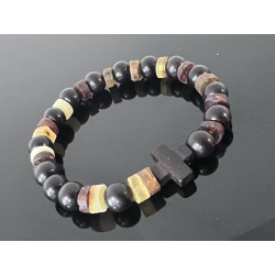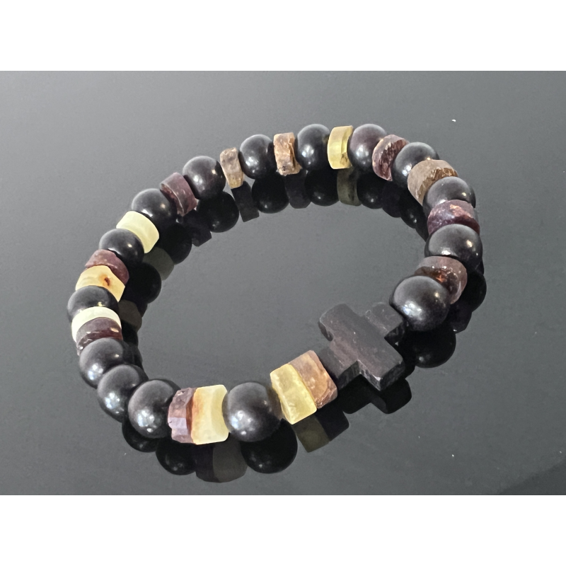 Różaniec na rękę z bursztynu i hebanu tygrysiego