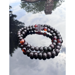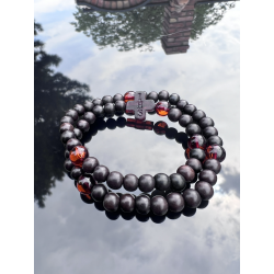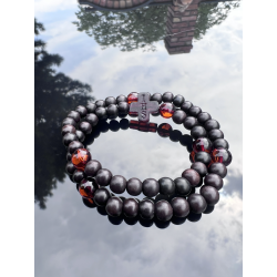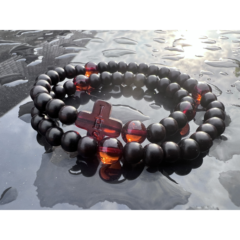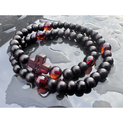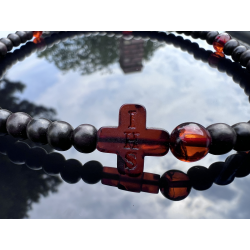Różaniec na rękę z hebanu i bursztynu bałtyckiego