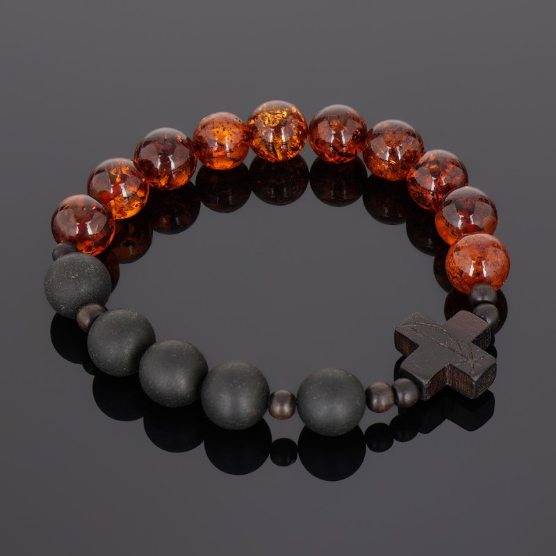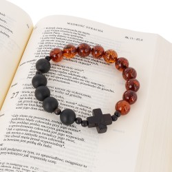 OraRosarium - Bransoletka różaniec królewski na rękę bursztyn koniak czarny mat