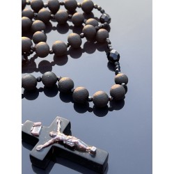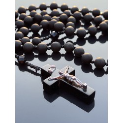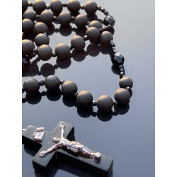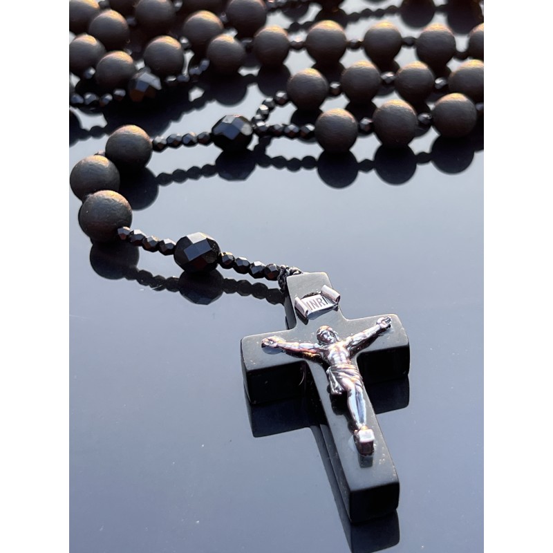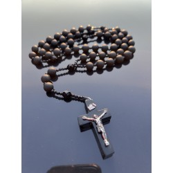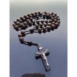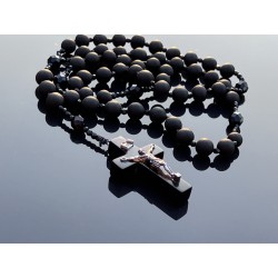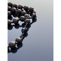 Różaniec Święty z Czarnego Matowego Bursztynu i Polerowanego Czarnego Szkła