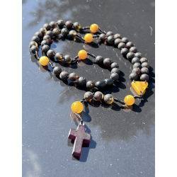 Odkryj piękno i duchową głębię modlitwy różańcowej z tym wyjątkowym różańcem wykonanym z naturalnego, matowego bursztynu bałtyckiego. Każdy paciorek (7-8 mm / 0,28-0,31 cala) został starannie dobrany, aby zapewnić harmonijną kompozycję, a jego ciepły, złocisty odcień dodaje wyjątkowego charakteru.