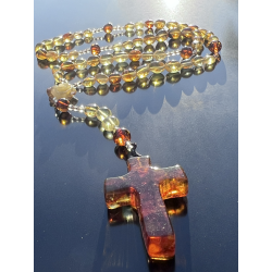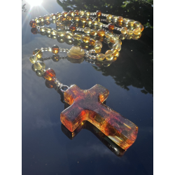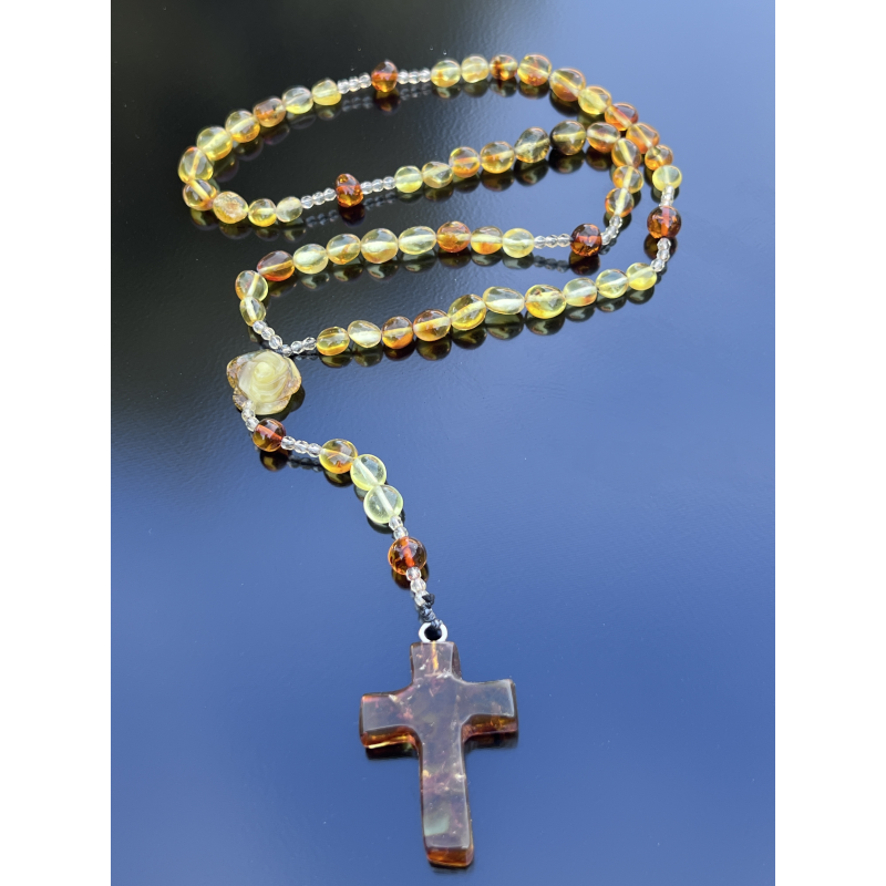 Na zakończeniu znajduje się krzyżyk z naturalnego bursztynu o wymiarach około 4 cm x 3 cm, będący wyrazem głębokiej duchowości i zakorzenienia w modlitwie.