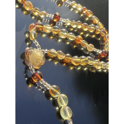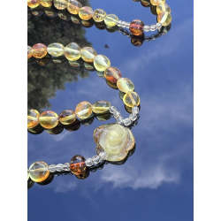 Różaniec z bursztynu z ręcznie rzeźbiona różą