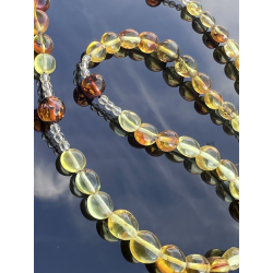 Różaniec z bursztynu bałtyckiego z ręcznie rzeźbioną różą
