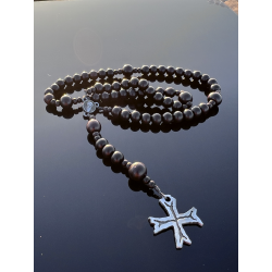 Ręcznie wykonany różaniec z naturalnych, szlachetnych materiałów.