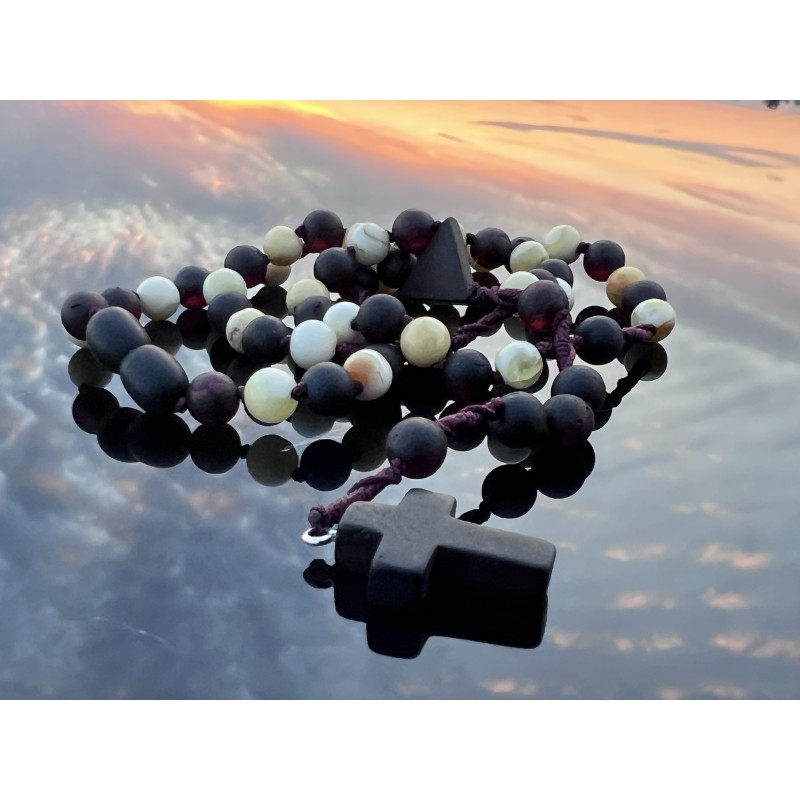 Różaniec wykonany z naturalnego bursztynu bałtyckiego to klasyczna forma modlitwy zamknięta w eleganckiej, wygodnej konstrukcji z praktycznym zapięciem. Subtelne koraliki o średnicy ok. 6 mm tworzą harmonijną całość — lekką, ale wyraźnie obecną w dłoni.
