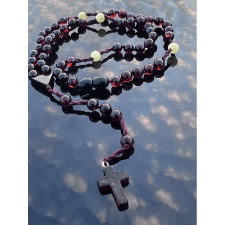 Różaniec wykonany z naturalnego bursztynu bałtyckiego to klasyczna forma modlitwy zamknięta w eleganckiej, wygodnej konstrukcji z praktycznym zapięciem. Subtelne koraliki o średnicy ok. 6 mm tworzą harmonijną całość — lekką, ale wyraźnie obecną w dłoni.