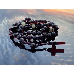 Ciepła barwa bursztynu — od złocistych tonów po głębsze, miodowe odcienie — nadaje różańcowi naturalne piękno i spokojny charakter. Każdy koralik jest inny, nosi w sobie własną historię i strukturę.