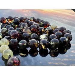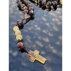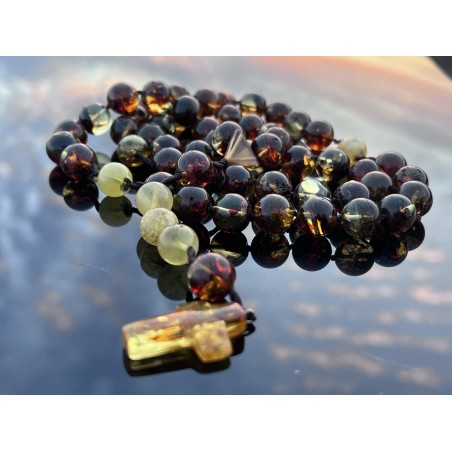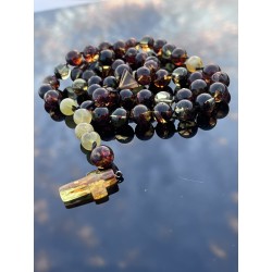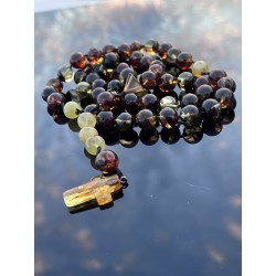 Duży, wyrazisty różaniec wykonany z polerowanego bursztynu bałtyckiego w przepięknych, naturalnych kolorach to propozycja dla osób, które szukają modlitwy obecnej — odczuwalnej w dłoni, mocnej i skupionej.