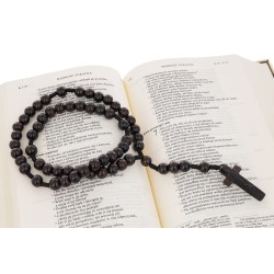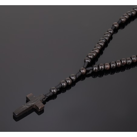 Ten wyjątkowy różaniec został wykonany własnoręcznie z najwyższej jakości drewna hebanu tygrysiego - tiger ebony. Heban nazywany jest „wschodnim magicznym drewnem”. Dzięki swej twardości jak żelazo, nazywa się je „Diamentem w drewnie”, i jest uważane za najwyższej klasy drewno liściaste, prawdziwy heban jest materiałem luksusowym, który odpowiednio pielęgnowany może posłużyć przez naprawdę wiele lat. Głównym elementem są wyjątkowe i nadające mu niepowtarzalnego klimatu kamienie szlachetne, jakimi są bursztyny. Bursztyn - jantar, seastone, amber, to odmiana bursztynu powstała w warunkach naturalnych przed 40 milionami lat! Jest on nie tylko elegancki, ale również bardzo trwały, dzięki czemu nawet po upływie wielu lat zachowa swój piękny wygląd. Jest to fantastyczna pamiątka na całe życie.