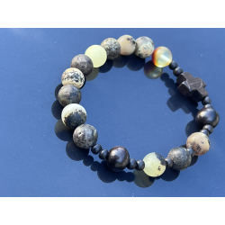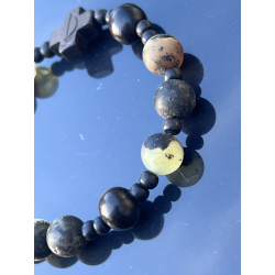 Bransoletka męska wykonana z naturalnego, matowego bursztynu bałtyckiego w wyjątkowym oliwkowym odcieniu. Koraliki o średnicy 9-10 mm podkreślają męski charakter i dodają bransoletce wyrazistości. Produkt dostępny w rozmiarach od 19 cm do 23 cm, co pozwala na idealne dopasowanie do nadgarstka.