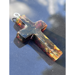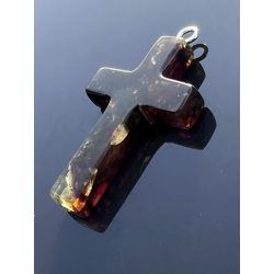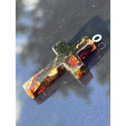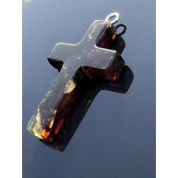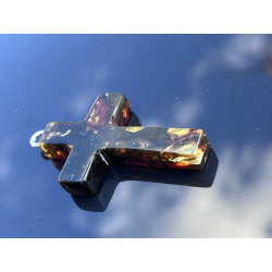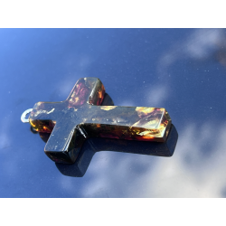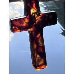 Ten wyjątkowy, duży krzyżyk o wymiarach ok. 5 cm x 3 cm został wykonany z naturalnego bursztynu bałtyckiego – kamienia, który od wieków uważany jest za znak Bożej obecności, oczyszczenia i duchowego światła. Jego wyrazista forma i ciepły kolor, mieniący się wieloma barwami, czynią go nie tylko pięknym, ale i pełnym znaczenia symbolem wiary.