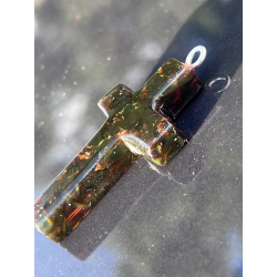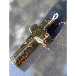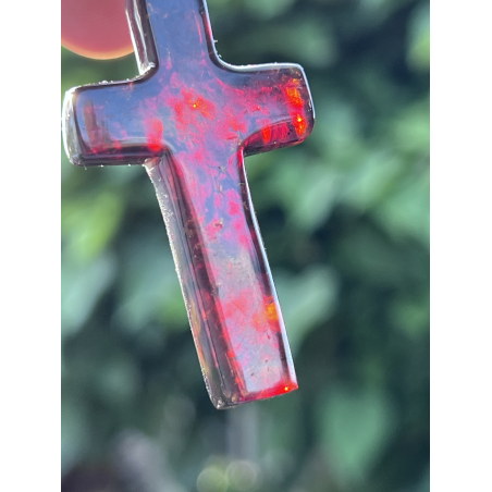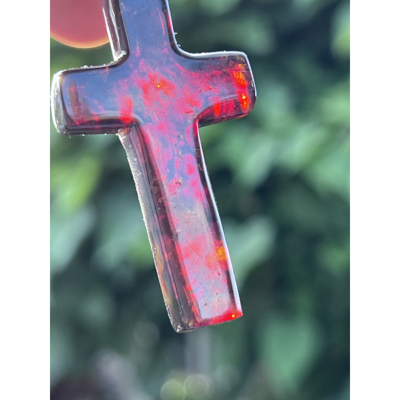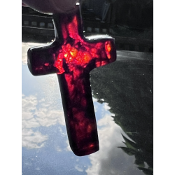 Ten wyjątkowy, duży krzyżyk o wymiarach ok. 5 cm x 3 cm został wykonany z naturalnego bursztynu bałtyckiego – kamienia, który od wieków uważany jest za znak Bożej obecności, oczyszczenia i duchowego światła. Jego wyrazista forma i ciepłykolor, mieniący się wieloma barwami, czynią go nie tylko pięknym, ale i pełnym znaczenia symbolem wiary.