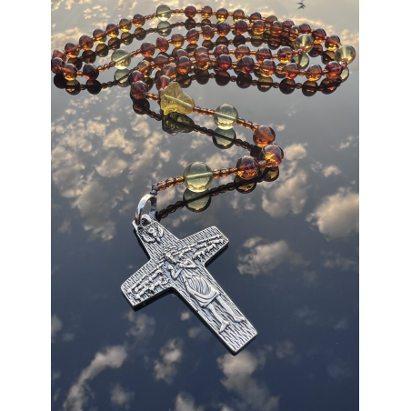 Całość dopełnia srebrny krzyżyk „Dobry Pasterz” (Ag925, ok. 50 × 30 mm), który na życzenie można zastąpić bursztynowym krzyżykiem o podobnych wymiarach.