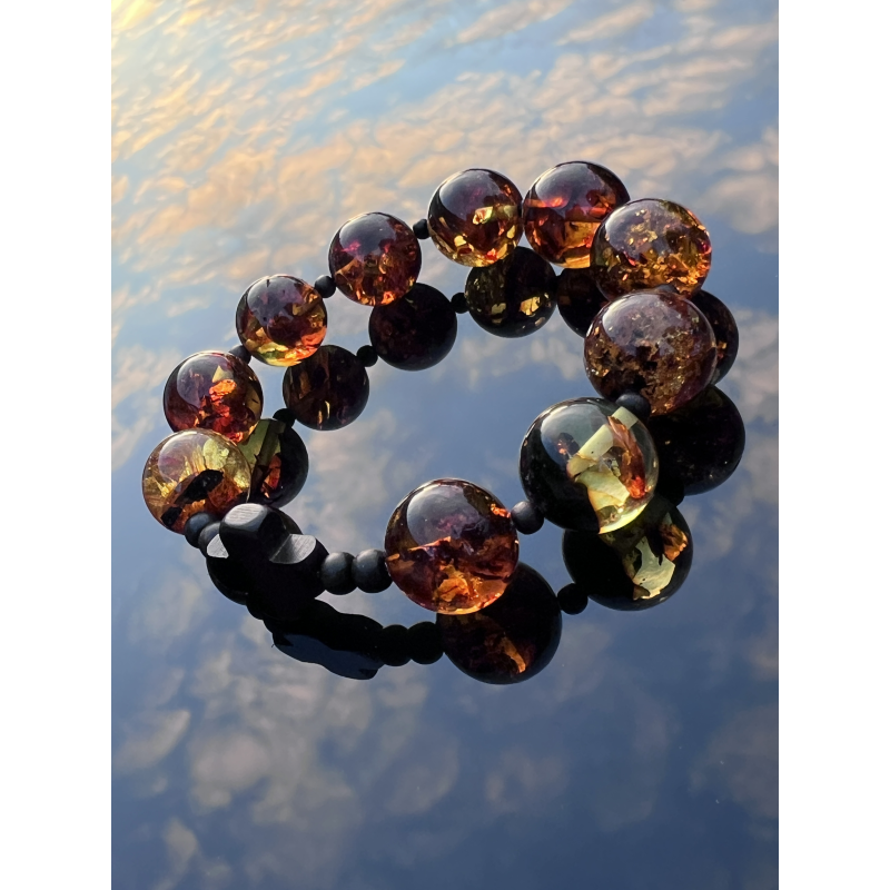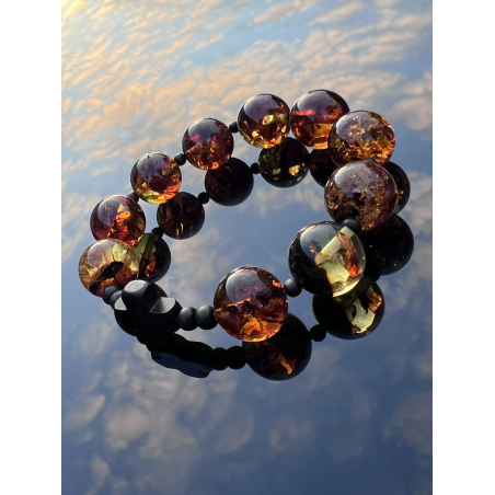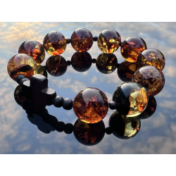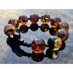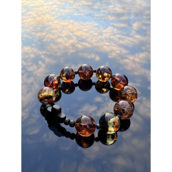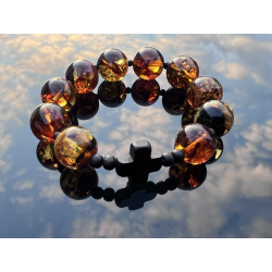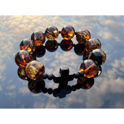 Piękny różaniec w formie bransoletki, wykonany z naturalnego bursztynu bałtyckiego o dużych, szlachetnych koralach (ok. 13 mm). Dostępny w rozmiarze damskim (ok. 17/18 cm). Całość dopełnia elegancki krzyżyk z drewna hebanu tygrysiego , który nadaje całości wyjątkowego charakteru.